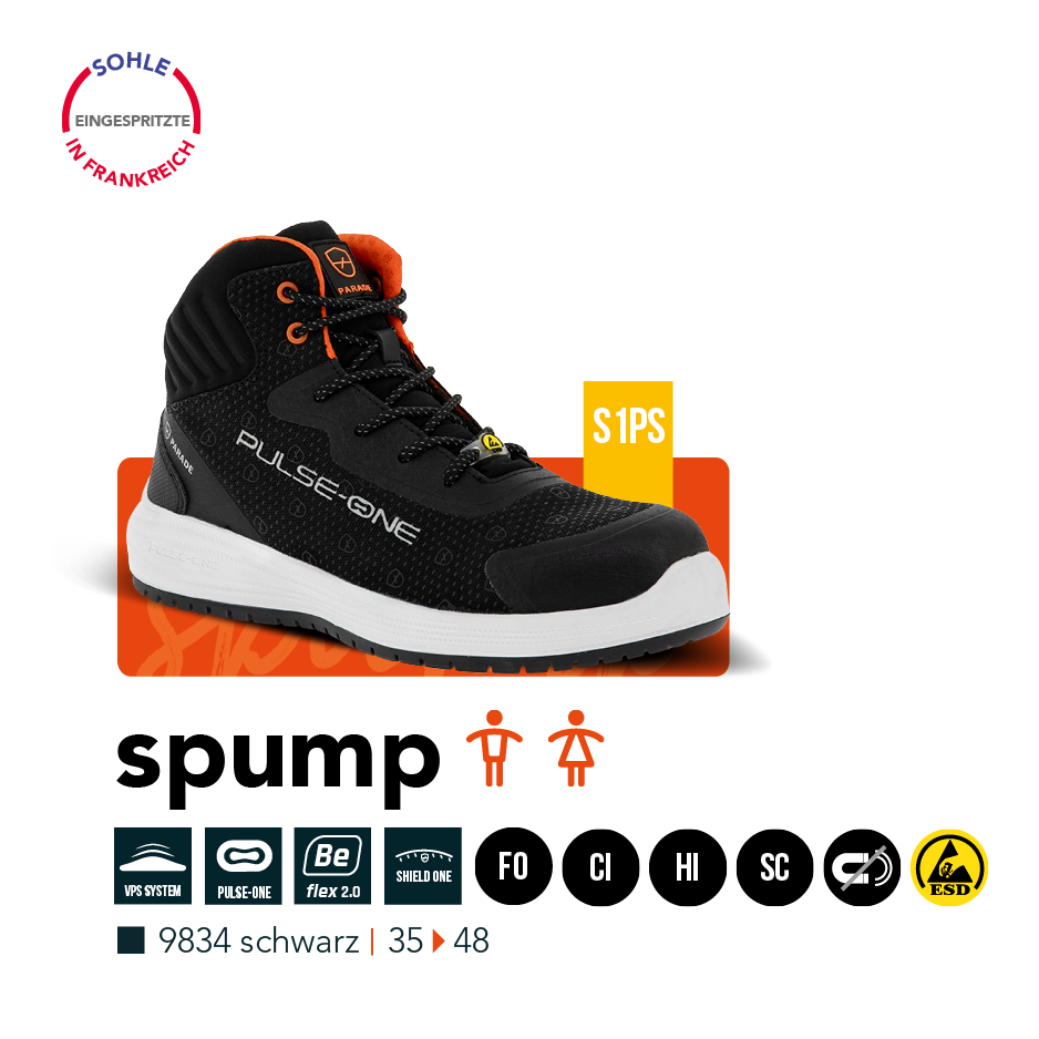 Das Design der SPULSE-Modelle ist darauf ausgelegt, das Beste aus jedem Material herauszuholen und so die Ausdauer des Trägers zu verlängern. Jedes Detail wurde für Ihren Komfort durchdacht: Knöchelstabilisierung, hochelastische Einlegesohle und atmungsaktive, extrem strapazierfähige Materialien.