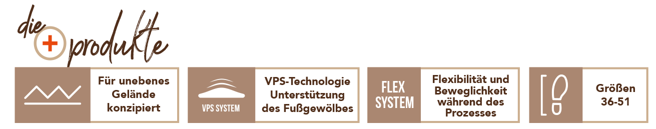 - Elastikeinsatz innen, um das Eindringen von Erde und Wasser in den Schuh zu verhindern.