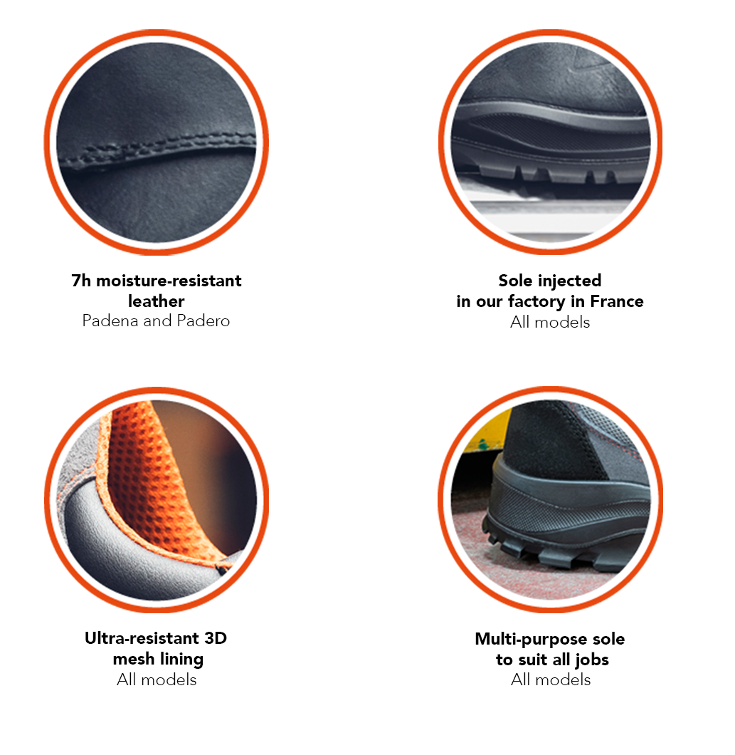 The range is expanding with the arrival of two new S3S leather models: Padena & Padero. Suitable for outdoor work, Padena and Padero feature 7H MOISTURE-RESISTANT PULL UP LEATHER and an LG-marked unhooked heel, ideal for rough terrain. They are also ESD approved.