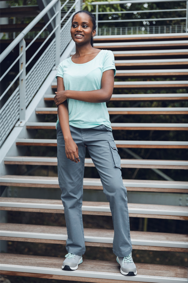 Tout d’abord le pantalon de travail BOGOTA. Existant en 3 coloris (bleu, kaki et moutarde), ce pantalon léger est idéal pour un look professionnel et décontracté à la mi-saison. Avec son tomber impeccable et ses belles finitions, BOGOTA est un pantalon polyvalent : il vous accompagne lors de vos rendez-vous client, sur les chantiers et à la ville ! Il offre un tomber près du corps dans un tissu à la fois léger, robuste et extensible. Pantalon de travail avant tout, BOGOTA vous permet d’avoir tous vos outils sous la main grâce à ces différentes poches.