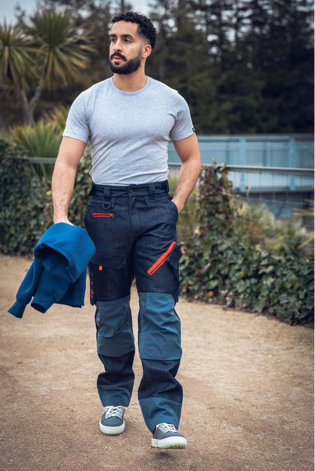 Le jean de travail BAYAC DENIM s’adresse aussi bien aux femmes qu’aux hommes, aux petites qu’aux grandes tailles. Le pantalon de travail mixte présente une coupe regular déclinée du 36 au 52. Sa taille mi-haute s’ajuste à la morphologie du porteur grâce à des élastiques latéraux. Avec BAYAC DENIM, PARADE va encore plus loin ! Nous avons développé la technologie BE-EXTEND : des ourlets ajustables très facilement. Découdre un premier fil orange rallonge la jambe de 2 cm. Un second la rallonge de 1,5 cm supplémentaire.