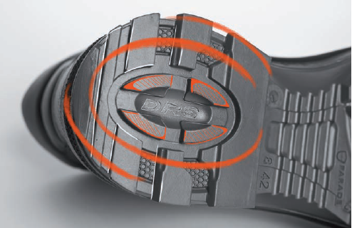 Notre technologie DRS accompagne le talon dans son rôle d'amortisseur. Le DRS est une cavité sous le talon, en forme de demi-coupole. Au contact du talon avec le terrain, cette cavité s'affaisse et accompagne le talon dans son mouvement souple d'adaptation au terrain, précédant le déroulé du pied et la propulsion. Découvrez le DRS 2 sur notre semelle sport Racing.
