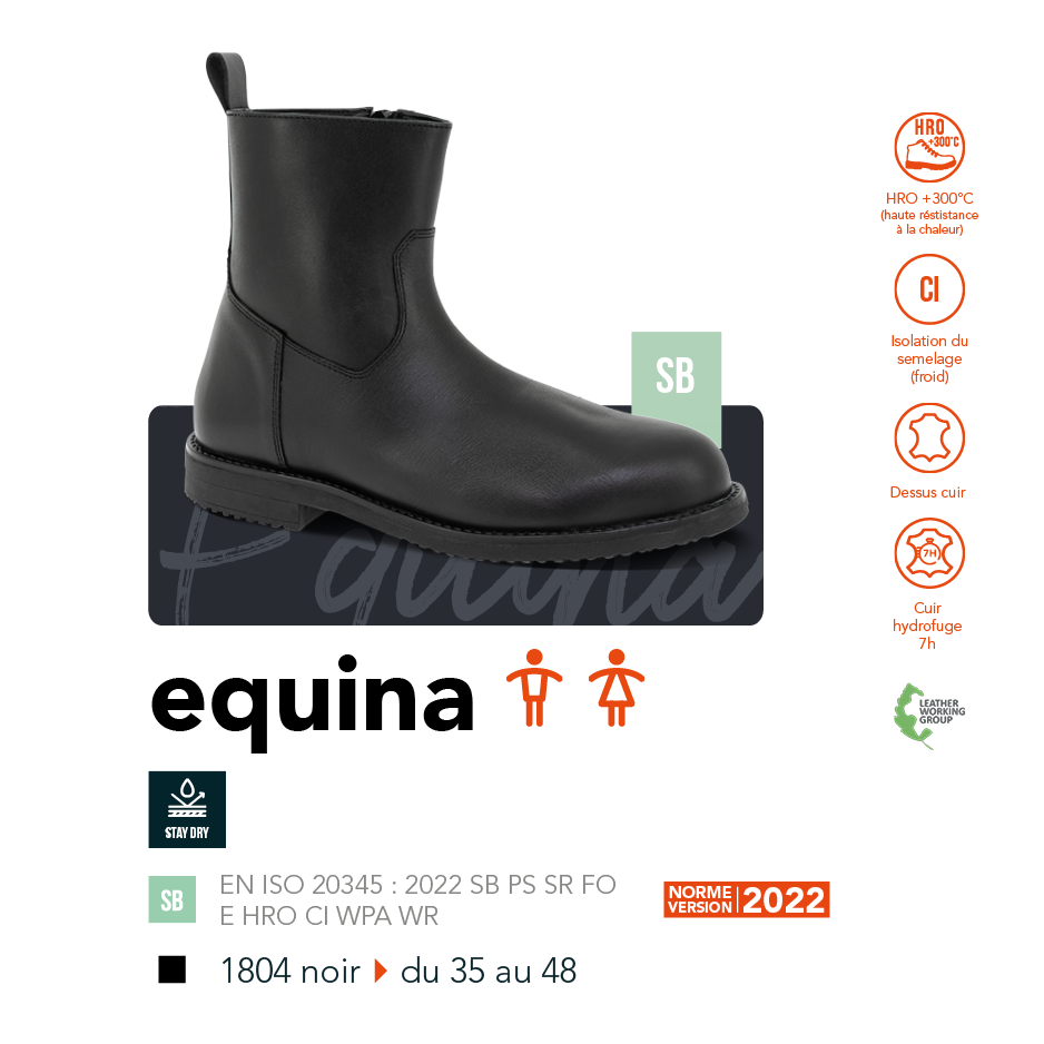 Les métiers de l’équitation sont régulièrement soumis à des environnements humides et aux projections d’eau. Pour répondre à cette problématique récurrente dans le monde de l’équitation, Parade a développé une membrane imper-respirante, résistante à la pénétration de l’eau (Water Resistant) pendant 7h, soit une résistance 5 fois plus élevée que les exigences imposées par les tests. Cette membrane est dotée de coutures étanchées. Elle est garantie sans PFAS pour assurer une sécurité optimale. Avec cette technologie exclusive STAY DRY, les professionnels de l’équitation pourront poursuivre leurs activités tout en gardant les pieds au sec toute la journée.