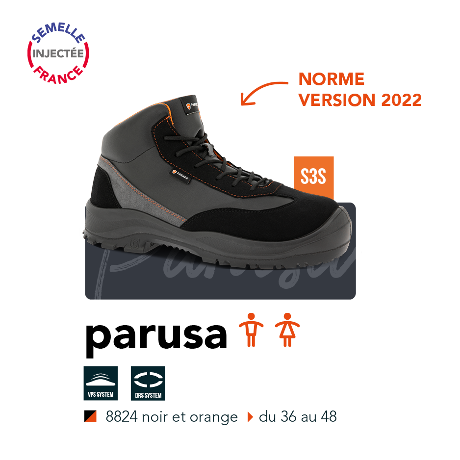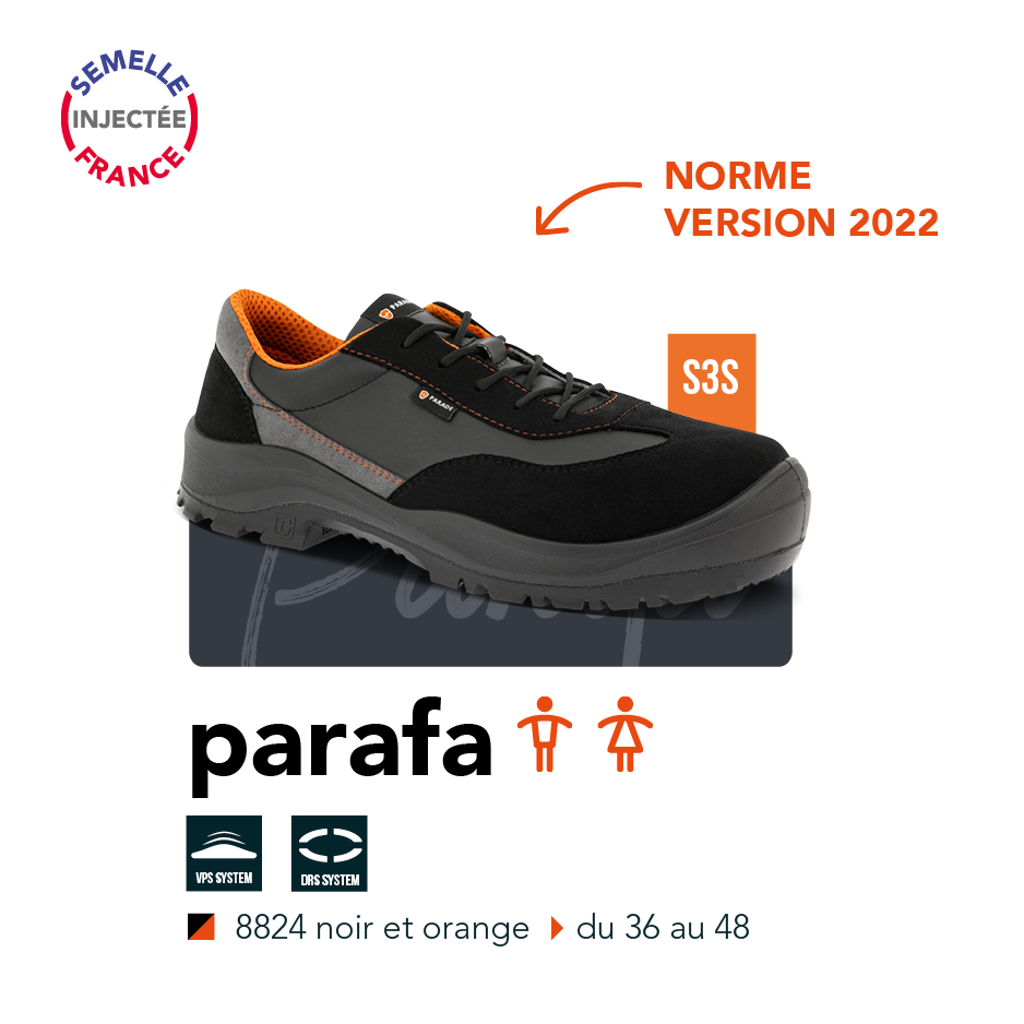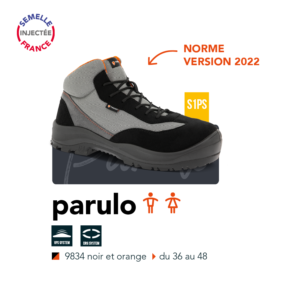 La collection PARAVOL répond à un cahier des charges bien précis : des modèles amagnétiques et confortables, présentant une semelle polyvalente. Equipés de nos technologies exclusives, ces modèles disposent du DRS (Delete Resonance System) conçu pour une absorption des ondes de chocs, et du VPS destiné à un meilleur maintien de la voûte plantaire pour moins de fatigue au quotidien.